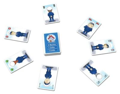 Sieben Polizisten liegen in Form von Karten in einem Kreis auf dem Tisch.