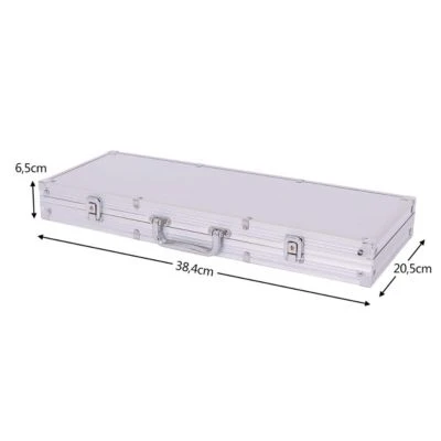 Sind Sie auf der Suche nach einem hochwertigen Pokerkoffer? Hier bieten wir Ihnen das wunderbarer Pokerkoffer mit viel Inhalt! Dieses Pokerset bestehen aus einem Alukoffer, 300 Pokerchips in 7 Farben, 2 Sets Pokerkarten, 5 Würfel und 3 Händler-Chip. Die Chips liegen gut in der Hand durch das Gewicht von 12 Gramm je Pokerchip(Metallkern), was dem Spiel das „Las Vegas Feeling“ gibt.