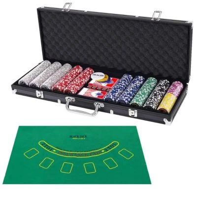 Mit 500 Chips, 2 Decks mit Spielkarten, 5 Würfeln, 3 Händler-Chips, einem Tischtuch und einem Aluminium-Tragekoffer für eine ordentliche Aufbewahrung und einen einfachen Transport haben Sie alles, was Sie für eine erstklassige Pokernacht brauchen. Die 7 Farben mit schönen Mustern geben den Chips ein einzigartiges und unverwechselbares Aussehen, während sie sich durch das hochwertige Material angenehm anfühlen. Geeignet ist es als Geschenk für Profis und Anfänger aller Altersgruppen. Mit diesem Set können Sie Texas Holdem, Blackjack, etc. spielen und unendlich viel Spaß haben!