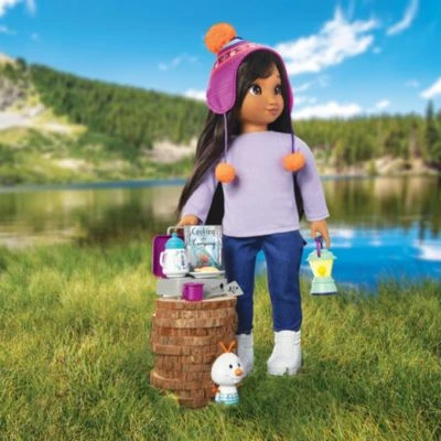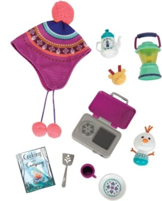 Für kleine Puppeneltern und Eisköniginnen-Fans kommt mit diesem bezaubernden Set alles, was benötigt wird, um einen wundervollen Campingausflug zu erleben. Das Set besteht aus einem tragbaren Kochherd, Pfannenwender und Camping-Kochbuch. Mit der kuscheligen Mütze ist dem Puppenkind warm und der niedliche Schneemann-Begleiter ist ein toller Freund für die Puppenkinder. Das Zubehörset ist mit den meisten 45cm-Puppen kompatibel.