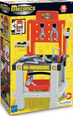 Werken wie die Großen! Die detailreiche Werkbank von écoiffier hat alles, was kleine Nachwuchs-Handwerker*innen benötigen: Bohrmaschine, Hammer, Zange, Gabelschlüssel, Schutzbrille sowie einen kleinen Werkzeugkoffer mit Schrauben und Zubehör. Damit auch nach dem Spielen alles seine Ordnung hat, ist die Bank mit ausreichend Aufbewahrungsfächern und Regalen ausgestattet. Hier kann sich jedes Kind kreativ betätigen, schrauben, bohren und reparieren und dabei gleich die unterschiedlichen Werkzeuge kennenlernen. Da die Werkbank ganz ohne Elektronik und Batterien auskommt, ist sie bereits für Kinder ab 18 Monaten geeignet.