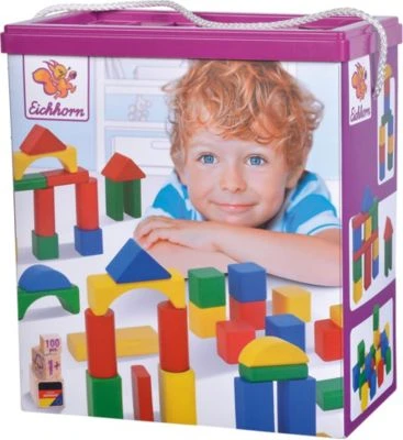 Perfekt für kleine Nachwuchs-Architekten: Die bunten Holzbausteine von Eichhorn animieren den Nachwuchs dazu, fantasievolle Bauwerke zu errichten. Holzbausteine von Eichhorn Aufbewahrungsbox mit Deckel und Kordel, 100 Bauklötze in verschiedenen Formen und Farben ab 12 Monaten Made in Germany Mit dem Set von Eichhorn stehen dem Nachwuchs gleich 100 bunte, aus nachhaltigem Buchenholz gefertigte Bausteine zur Verfügung. Kinder ab zwölf Monaten können die verschiedenen Klötze zu kreativen Bauwerken stapeln oder sie nach Farben oder Formen sortieren. Haben die kleinen Baumeister genug gespielt, lassen sich die einzelnen Steine wieder in der praktischen Aufbewahrungsbox mit Deckel verstauen. Auf spielerische Art und Weise schult die Beschäftigung mit den Bauklötzen die Feinmotorik und Hand-Auge-Koordination des Kindes. Die Minis können mit den buten Designs Farben und Formen lernen und das Prinzip von Ursache und Wirkung entdecken: Versetzt man dem Bauwerk einen Schubs, fällt es mit einem lauten Geräusch, in sämtliche Einzelteile zerlegt zu Boden.