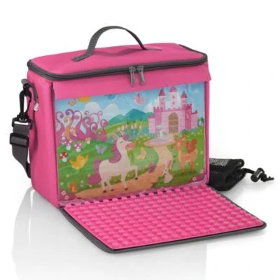 • Die ausklappbare Spielplatte (19.1 x 25.5cm) ist kompatibel mit den Sets der meisten Bausteinmarken großer Größe wie z.B. Lego Duplo. Eine extra Spielplatte ist bei der XL-Tasche in einem eigenen Fach verstaut.