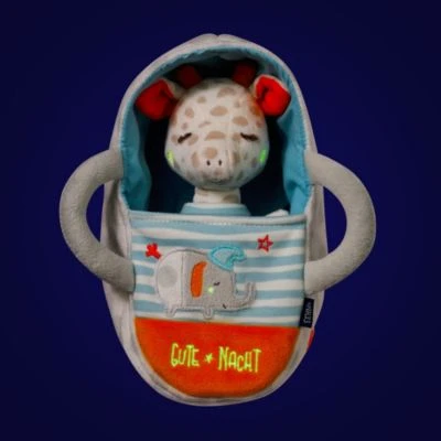 Die tierisch süße Giraffe von Fehn lädt die Kleinen ab Geburt zum Kuscheln, Fühlen und Entdecken ein. Kuscheltier Giraffe von Fehn aus der „Gute Nacht“-Kollektion mit Glow-in-the-dark-Bestickung und Tragetasche Obermaterial aus Velours und Jersey ab Geburt geeignet Die kleine Giraffe wird schnell zu Babys treuem Begleiter: Dank weichem Obermaterial aus Velours und Jersey ist sie der perfekte Kuschelfreund für die Kleinen ab Geburt. Die unterschiedlichen Elemente laden die Kleinen zusätzlich zum Greifen und Entdecken ein, die im Dunkeln leuchtende Bestickung nimmt die Angst vor der Dunkelheit. Die Giraffe kommt mit passender Tragetasche und kann so bequem überall mitgenommen werden.