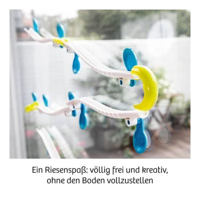 Flexibel, vertikal und völlig frei: Die innovative Kugelbahn „Gecko Run“ ist die neue Challenge für Anfänger und Fortgeschrittene und bei jedem Aufbau ein absolutes Unikat. Biegsame Bahnen, rasante Kurven und clevere Hebel: Jedes Bauteil wird mit rückstandsfreien Nano-Pads ganz individuell an senkrechten, glatten Oberflächen befestigt und in Sekundenschnelle umgesetzt, angepasst und feinjustiert. Ob um die Ecke oder über Hindernisse hinweg, ob an Türen, Glasscheiben, Fliesen oder Regalen – jetzt wird getestet, was alles möglich ist. Ganz frei, ohne einengende Stützkonstruktion und ohne den Boden vollzustellen – ein Riesenspaß, auch zum Mitnehmen. Die Kinder ab 8 Jahren entscheiden selbst, wie herausfordernd ihre Strecke wird und wie experimentell sie mit freiem Fall und Gravitation umgehen. Hier wächst die Bahn mit ihrer Erfahrung. Mit dem Starter-Set der KOSMOS Kugelbahn „Gecko Run“ geht’s rund! Oder um die Ecke! Oder mit Schwung über Lücken und Hindernisse! Keine Grenzen, sondern endlose Spielfreude. Nachhaltig: Alle Tracks bestehen aus biobasiertem Kunststoff und werden in Deutschland hergestellt. Auf dem Boden war gestern, jetzt geht es in die Senkrechte! Rasante Kurven, clevere Hebel, biegsame Bahnen: Diese Kugelbahn ist ein rasant neues Erlebnis. Ob um die Ecke oder über Hindernisse hinweg, ob an Türen, Glasscheiben, Fliesen oder Regalen – mit den rückstandsfreien Nano-Pads haften die Bahnen an senkrechten, glatten Oberflächen und sind in Sekundenschnelle umgesetzt und feinjustiert. Jeder entscheidet selbst, wie herausfordernd seine Strecke wird. Hier wächst die Bahn mit der Erfahrung!