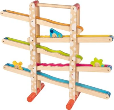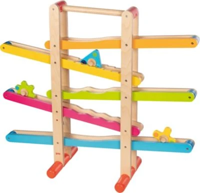 Mit dieser lustigen Kreiselbahn macht es richtig Spaß, den drei verschiedenen Laufteilen beim Hinunterpoltern zuzusehen! Ein Zahnrad, ein Kreuz und ein Dreieck sorgen dabei für die gebotene Abwechslung und trainieren spielerisch das räumliche Vorstellungsvermögen.