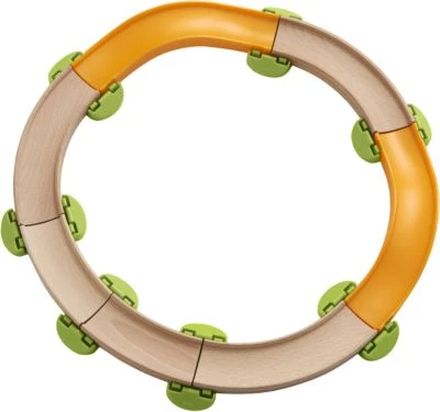 Das 14-teilige Kullerbü Ergänzungsset Kurven & Co. mit extrastabilen und kurvenreichen Bahn-Verbindungen wertet die Kullerbü Kugelbahn auf.