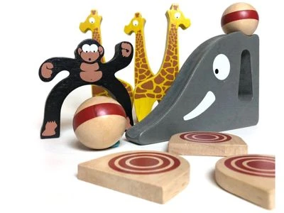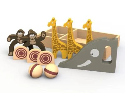 Die Giraffen umgerollt oder durch die Beine von den kleinen Affen gekegelt, vielleicht aber auch versuchen sie das Ziel zu treffen. Ganz egal ….es bringt soviel herzliches Lachen. Mit einer Elefantenrampe zum Zielen und „Schießen“, zwei Holzkugeln und einer Vielzahl von Giraffen, Affen und Zielen bringt dieses Bowling-Set Kinder zum fröhlichen Lachen. Die Freude über dieses Spiel hören Sie aus dem Kinderzimmer.