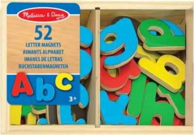 Die Melissa & Doug Buchstabenmagnete aus Holz kommen in einem handlichen Holzkasten. Die 52 magnetischen Groß- und Kleinbuchstaben bieten Freude am Lernen beim Erkennen und Vergleichen von Buchstaben sowie fürs Schablonieren.