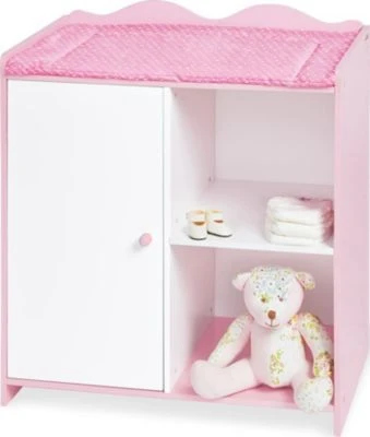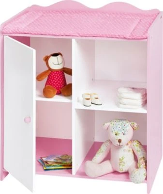 • 1 Einlegeboden, 1 Tür, 2 offene Fächer, Inkl. Wickelauflage ‚Kleine Herzen‘, rosa, konform mit europäischer Spielzeug-Norm