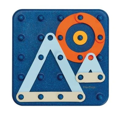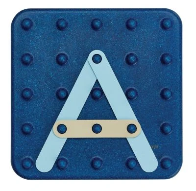 Erstelle verschiedene geometrische Formen, Zahlen, Buchstaben und Bilder. Kinder können die Muster auf den Spielkarten nachbauen, oder ihre eigenen Motive erstellen. Komplett mit einem hölzernen Steckbrett, 40 doppelseitigen Spielkarten (26 für Groß- und Kleinbuchstaben, 10 für die Zahlen 0-9 und vier mit Bildern) und 30 Gummiplättchen in fünf verschiedenen Formen und Farben.