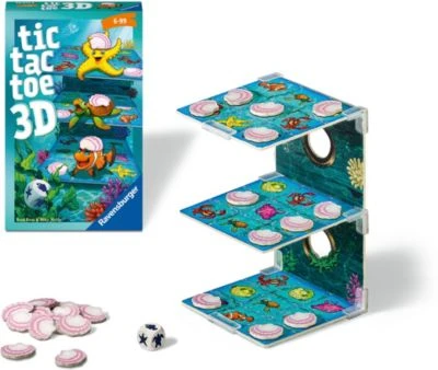 Bei Tic Tac Toe tauchen die 2-4 Spieler zum Schiffswrack am Korallenriff ab: Hier laden die bunten Meeresbewohner zu einem originellen Drei-in-einer-Reihe Spiel in 3D ein. Reihum sind die Spieler am Zug. Ein Würfel bestimmt, welches Tier mit einer Muschel belegt werden darf. Taktisch klug gelegt, kann so eine Dreier-Reihe aus Muscheln entstehen. Durch den drei dimensionalen Spielaufbau können auch vertikale Reihen gebildet werden, die Extrapunkte ergeben.