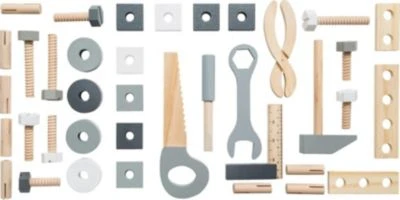 Perfekt für alle Nachwuchs-Handwerker*innen und Hobby-Werkler*innen: Mit diesem umfassenden Werkbank Set von Roba darf gebastelt, gebaut, geschraubt und gesägt werden. Die höhenverstellbare Werkbank wächst über Jahre mit und überzeugt mit der Verarbeitung aus robustem Holz und vielen Zubehörteilen. Die Rückwand der großen Arbeitsfläche ist mit Löchern versehen, um die beiliegenden Schrauben und Muttern anzubringen. Außerdem ist ein Schraubstock integriert mit dem Sägearbeiten viel leichter sind und eine Tafel für Skizzen sorgt dafür, dass die kleinen Handwerker*innen immer den Überblick behalten. Für die richtigen Abmessungen der Werkstücke ist mit dem aufgedruckten Maßband gesorgt und die großen Ablagefächer unterhalb der Arbeitsfläche bieten viel Platz für alle Zubehörteile und Werkzeuge.