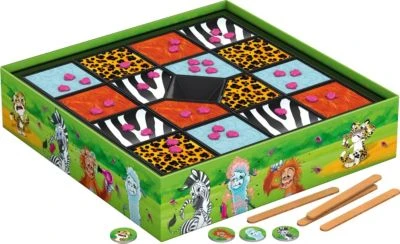 Floh-Alarm im Zoo! Oje, wo kommen plötzlich diese vielen kleinen, piksenden Gesellen her? Flöhe wohin man schaut! Der Orang-Utan, der Jaguar, das Lama und das Zebra wissen gar nicht, wo sie zuerst kratzen sollen. Könnt ihr den Tieren helfen, die kleinen Biester schnell loszuwerden? Aber, wie das mit Flöhen so ist: Sind sie hier fort, tauchen sie dort wieder auf. Ein munteres Hin-und-Her-Gehopse ist das, bei dem ihr schnell reagieren und gut zielen müsst, um zu gewinnen. Wer schafft es zuerst, alle vier Spielfelder des eigenen Tieres von den lästigen Plagegeistern zu befreien?