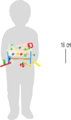 Hier wird gesägt, gehämmert und geschraubt! Die mehrfarbige Werkbank wird im Handumdrehen zum Werkzeugkasten, so können alle Werkzeuge aus hellem Holz nach Gebrauch schnell und unkompliziert verstaut werden. Mit dem Tragegriff lässt sich der Werkzeugkasten auch gut transportieren – so steht weiteren Projekten zum Beispiel bei den Großeltern nichts mehr im Wege – was bauen wir als nächstes?