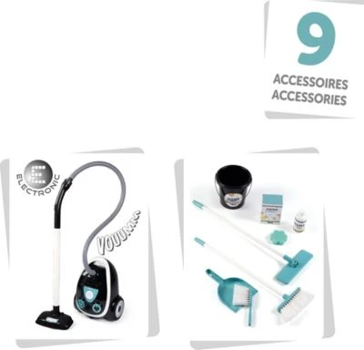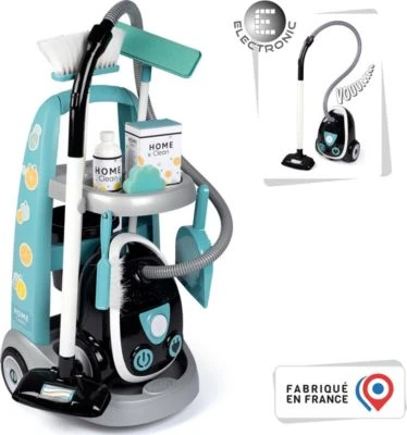 Dank dieses fabelhaften Smoby Reinigungstrolleys und der zahlreichen Zubehörteile können Kinder prima bei der Hausarbeit „helfen“! Der Kinderstaubsauger macht ein echtes Staubsaugergeräusch. Dank seiner kompakten Größe und des leichten Gewichtes ist dieser auch von kleineren Kindern ab 3 Jahren leicht zu handhaben. Weiteres Zubehör des Reinigungstrolleys: Schaufel und Besen, Wischmopp und Reinigungsmittel-Leerpackungen. Hochwertige Materialien machen diesen wendigen Wagen zum langlebigen Lieblingsspielzeug.
