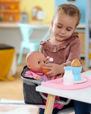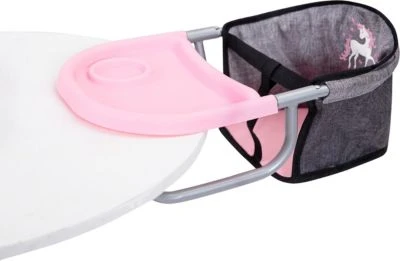Gemeinsam Essen mit der ganzen Puppenfamilie, das geht ganz einfach mit dem Tischsitz aus der myToys-COLLECTION von Bayer. Das Produkt im verspielten Einhorn-Look lässt sich ganz einfach an den meisten handelsüblichen Tischplatten befestigen. Der Sitz verfügt über einen Gurt im Schritt, sodass ein Herausrutschen nicht möglich ist. Kuscheltiere und Puppen könne hier gemütlich sitzen und eine leckere Mahlzeit von dem integrierten Tablett mit Bechermulde genießen.