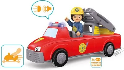 – bewegliche Spielfigur und 3-teiliges Fahrzeug