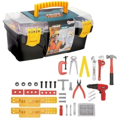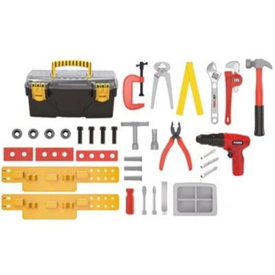 Kinder Werkzeuge im Werkzeugkasten für die kleinen Handwerker!Ob kleine oder große Baustelle, damit können die Kinder überall aushelfen.Der Werkzeugkasten enthält 35-teiliges Set.Der Hammer ist ca. 23 cm lang. Ein toller Werkzeuggürtel aus Kunststoff (16 Größen einstellbar) ist auch dabei.Das Set für Kinder enthält auch weiteres Werkzeug we Zollstock, Zange, Kneifzange, Rollgabelschlüssel und vieles mehr.