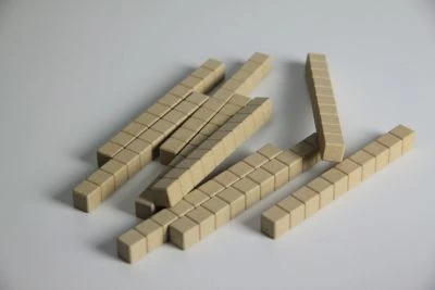 10 naturfarbene Zehnerstangen aus RE-Wood®.